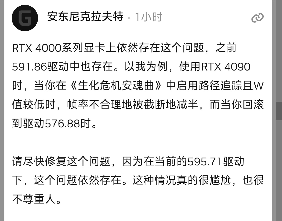 更新到595.71后卡顿问题加重