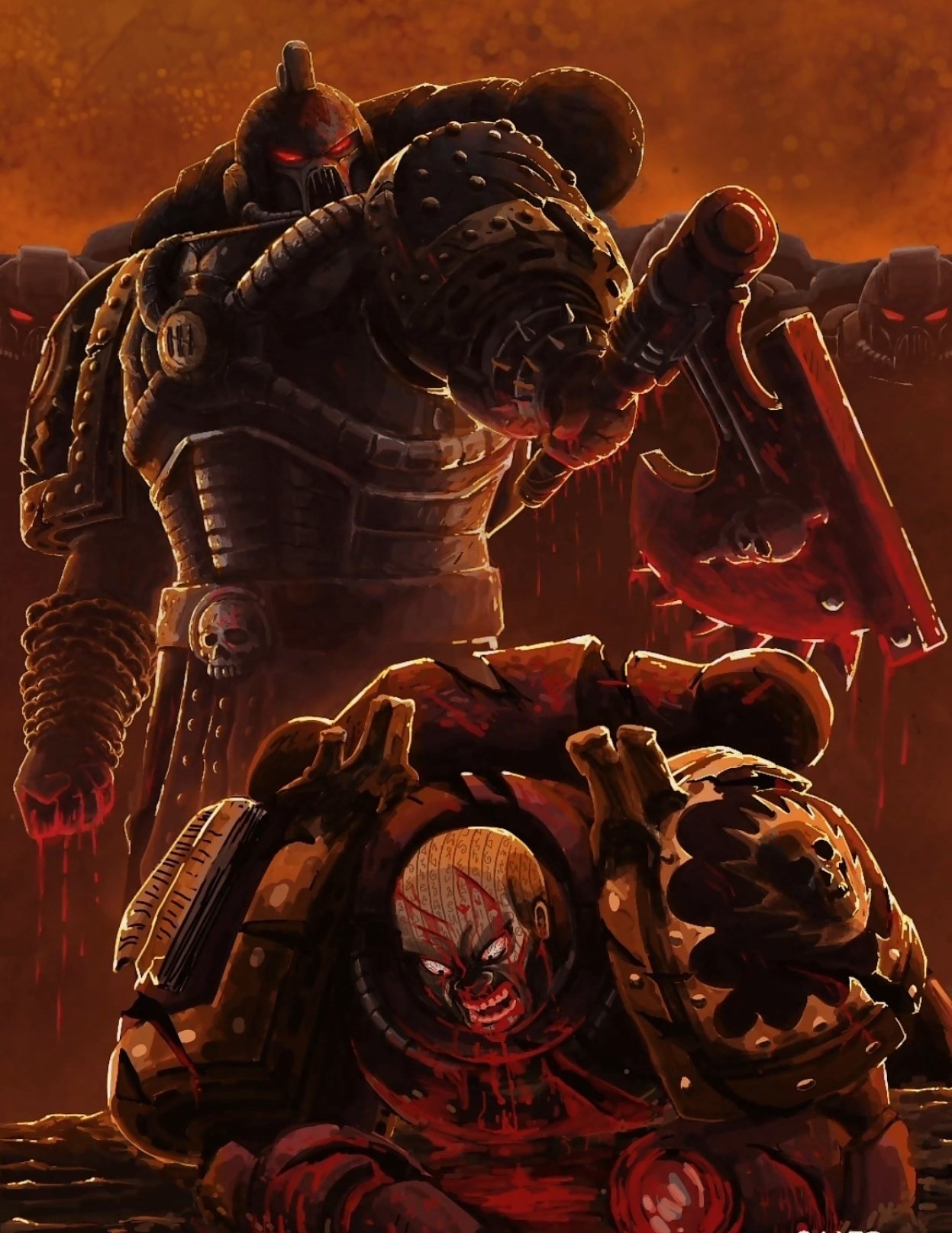 他们在卡恩与安格隆的带领下,攻克了无数顽固的异形要塞,平定了数不清的人类叛乱,每一场胜利的背后,都是堆积如山的尸体与颅骨。
