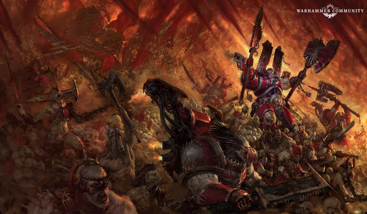 卡恩的死亡,本应是其故事的终点,但他过往近百年的杀戮行径,早已引起了血神恐虐(Khorne) 的注意。