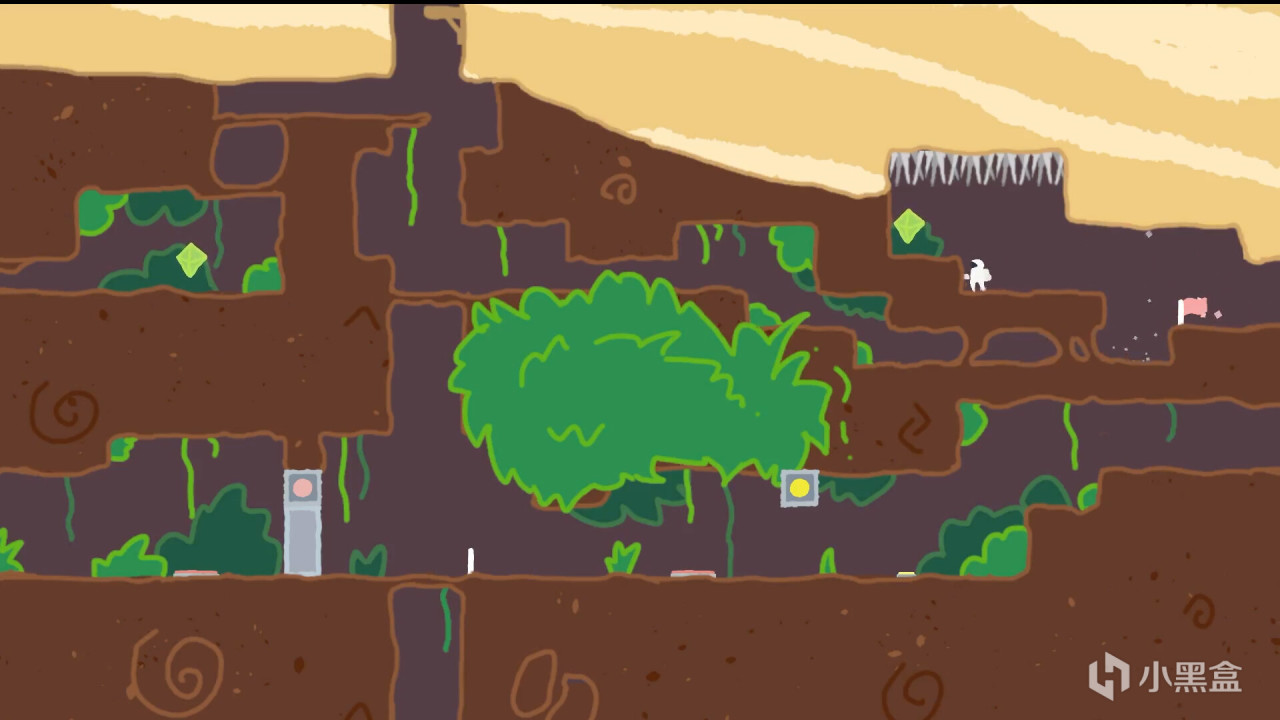 說是像蔚藍是因爲在關卡設計中包含大量空中允許多跳躍一次的機關,以及固定方向大沖刺的機關,demo玩到的部分就已經開始上強度了,整個人在行雲流水和受苦中左右搖擺。