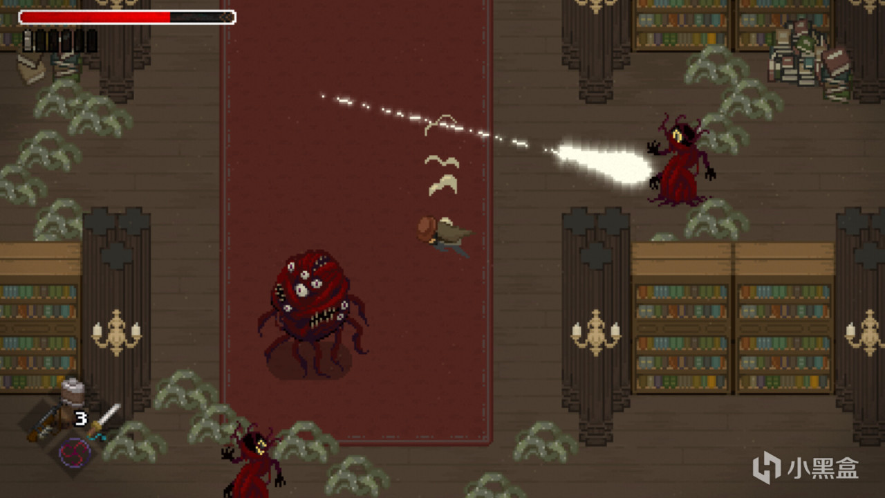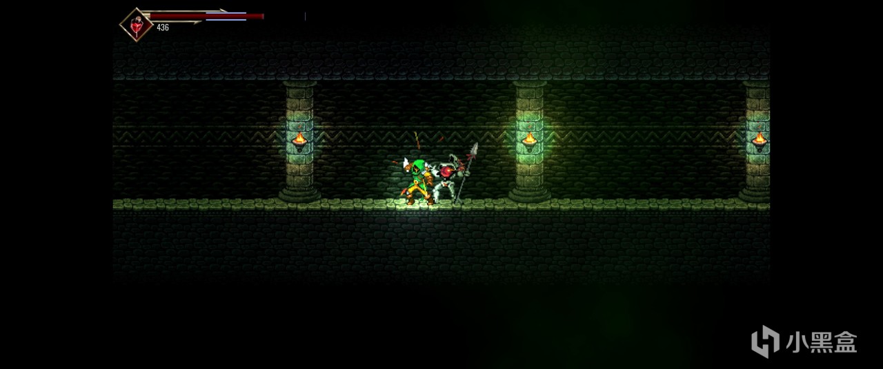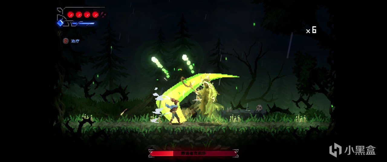 戰鬥方面除了硬碰硬以外還有彈反(?)和潛行暗殺,尤其面對一些重甲強力敵人時要精準彈反一整套連招,玩下來其實整體體驗還行但就是多樣性比較少感覺有些寡淡。(角色的像素美術做得還挺好的)