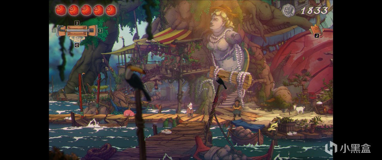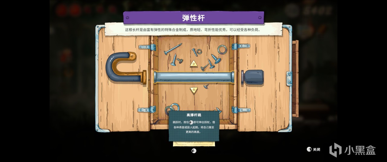 玩法方面主角只有一根柺杖,而且不能揮舞來攻擊,只能拄着來彈跳,後續能拿到各種柺杖的配件來模塊化定製,例如鉤形的拐頭能用來掛在環形機關上,也能用來拉扯;拐身有常規版也有更好彈力的高跳版,但也不是單純的上位替代,部分頂部有刺的低矮地形反倒需要較低的彈跳。但除此之外就沒什麼成長維度了,一路就是跑跑跳跳,解機關,擊敗敵人,收集寶物。路線其實非常單一,沒有什麼頻繁的倒插門和複雜的多分支探索,因此各方面都算不上是類銀。