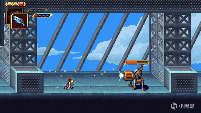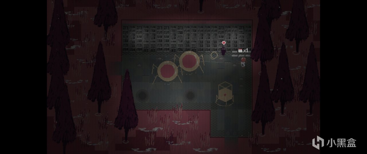 畫面簡單得就像《雨世界》的樸素像素遊戲。似乎在某個人類消亡的末世,主角作爲一個培養倉怪物醒過來,途中喚醒了一臺能協助射擊和收集元素物資的機器人,就這樣一個怪物和一個機器隨從探索這座城市。