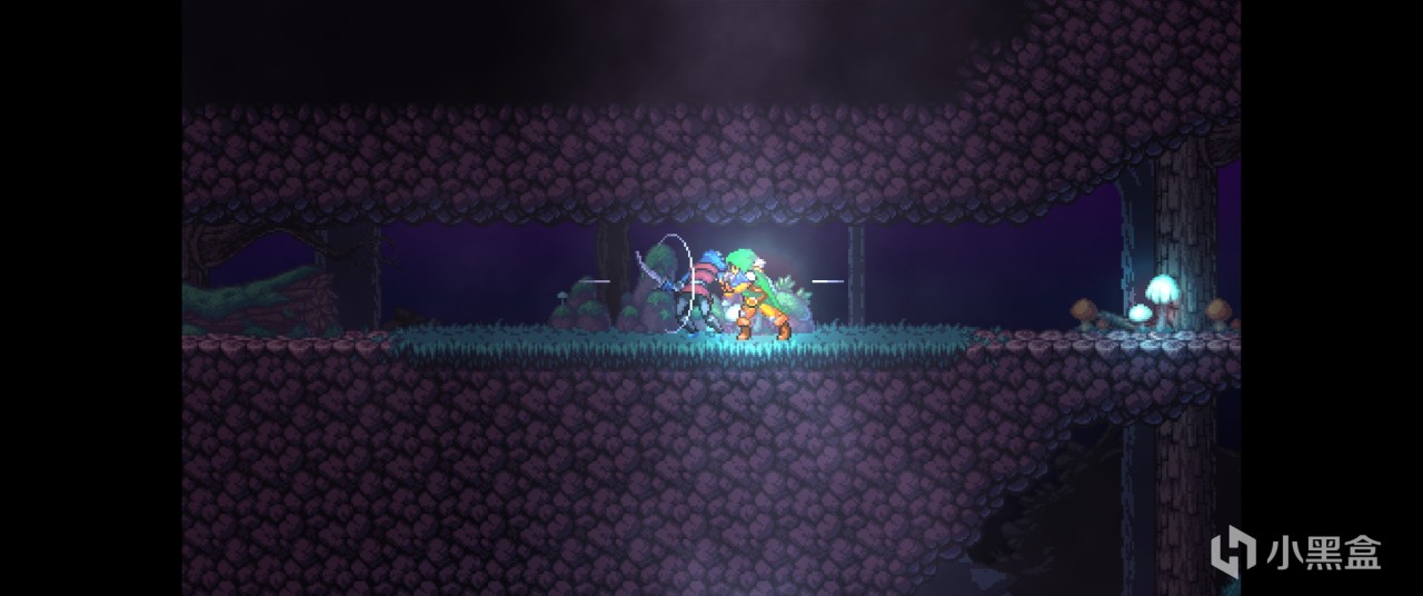 像素美術做得不錯,但角色本身的操作實在是太難受了,起跳腿都不打彎的,不知道是不是爲了強調塔防的效果而刻意把主角性能削成了跳屍。總之雖然有特色,但戰鬥和探索體驗都比較拉胯,可惜了這美術。