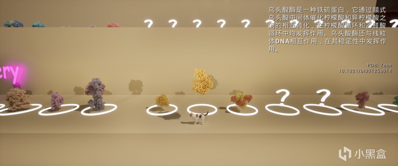 我怎麼都沒想到能玩到這麼個操作小貓在細胞內的微環境探索的遊戲。你能直面線粒體ATP合酶或烏頭酸酶,甚至能沿着脫氧核糖核酸的長鏈爬取高處。