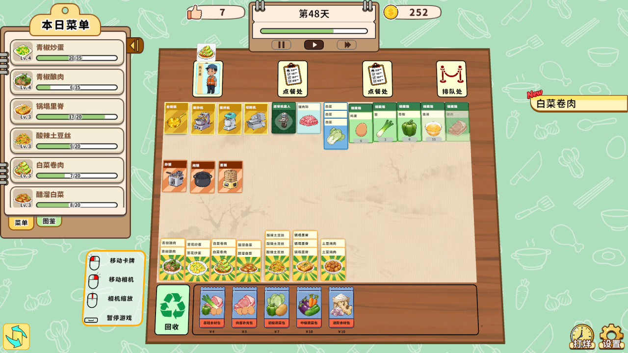 类型:烹饪题材的卡牌策略+模拟经营游戏