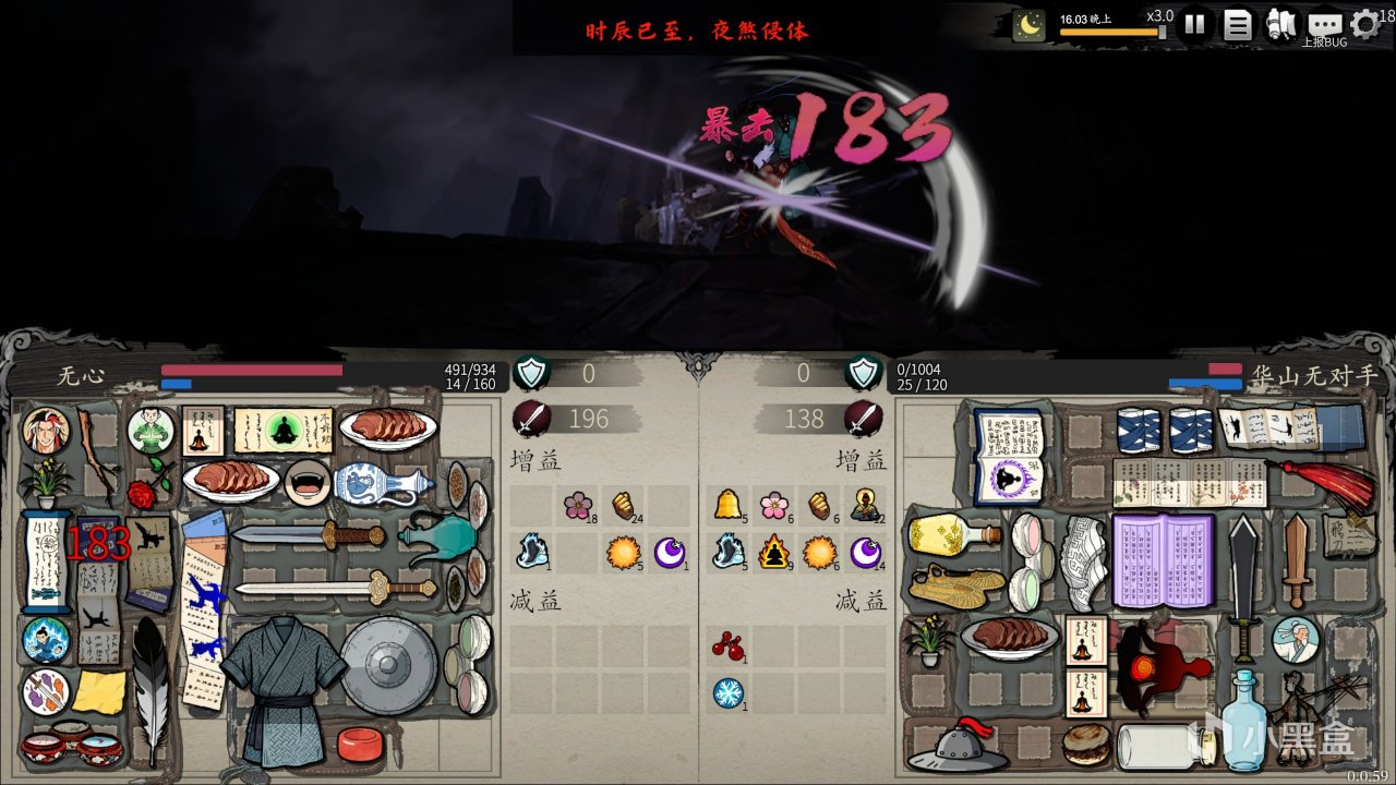 《背包闯江湖》毕竟还是背包管理类游戏,主要的玩法乐趣就在于背包空间的管理,用最合理的方式让背包容纳更多的物品,让各种有关联的物品产生羁绊,从而合成升级成更强的武学和物品来提升实力。在遇到拦路匪徒和其他江湖路上的竞争对手的时候会进入自动战斗,战斗结果完全取决于背包配置,胜利还能夺取战利品来进一步提升自己。