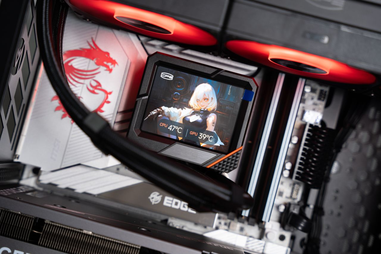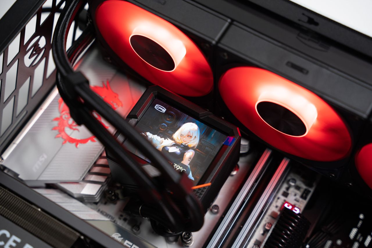 水冷方面选择的是装甲风格满满的北境GT360,极具硬核的电竞风格,水冷屏幕支持自定义,有着8年的超长质保,在压制200W功耗的285K的温度表现中,室温24度左右时CPU温度保持在80度左右