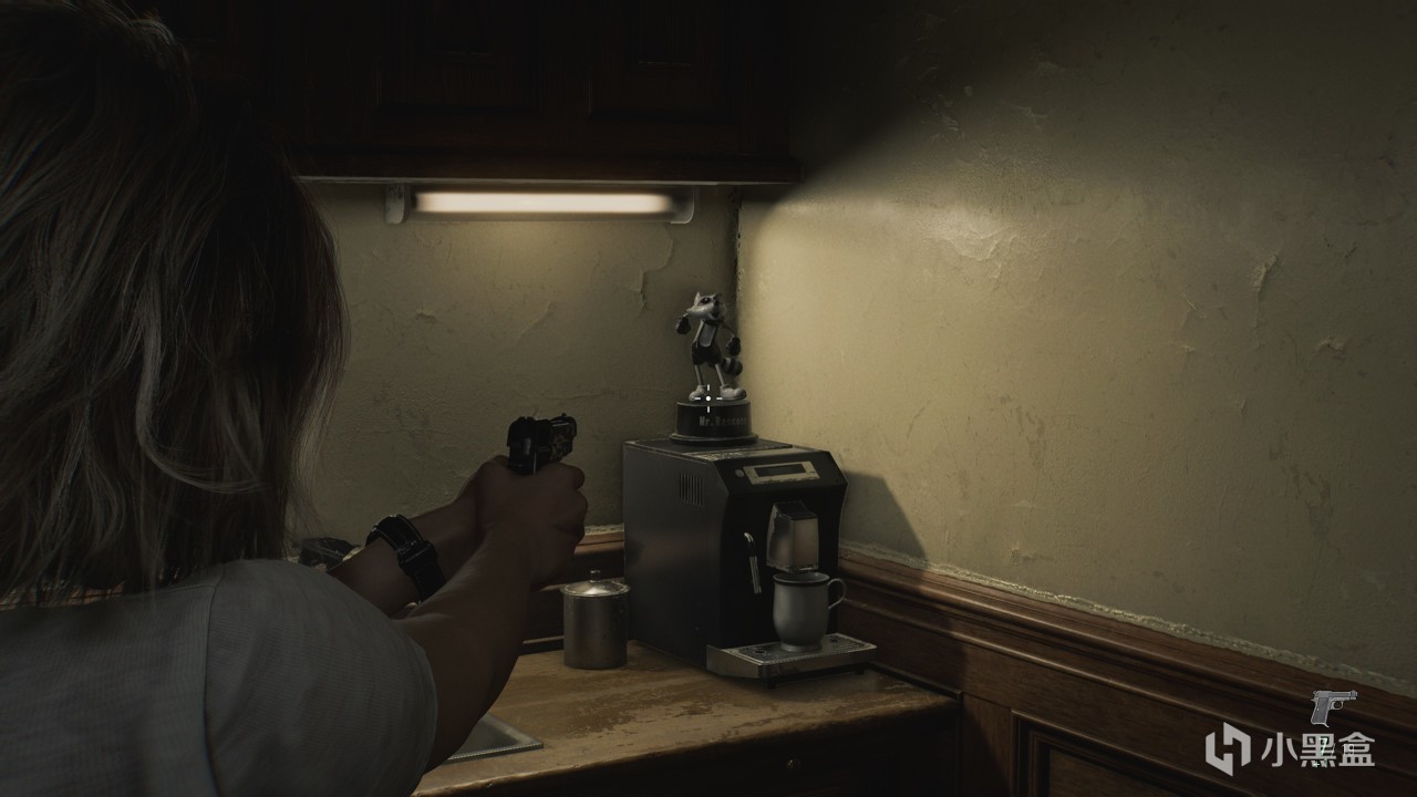 11、初入浣熊市,往前走到路口,右转,进入左侧的绿洲咖啡馆,在柜台后面。