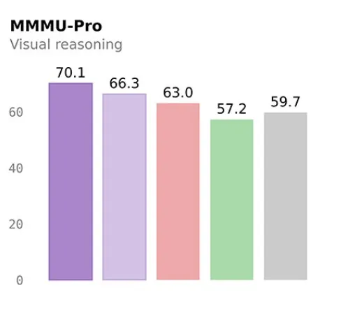 视觉基准MMMU-Pro跑到70.1,比GPT-5-Nano高了十几个点。
