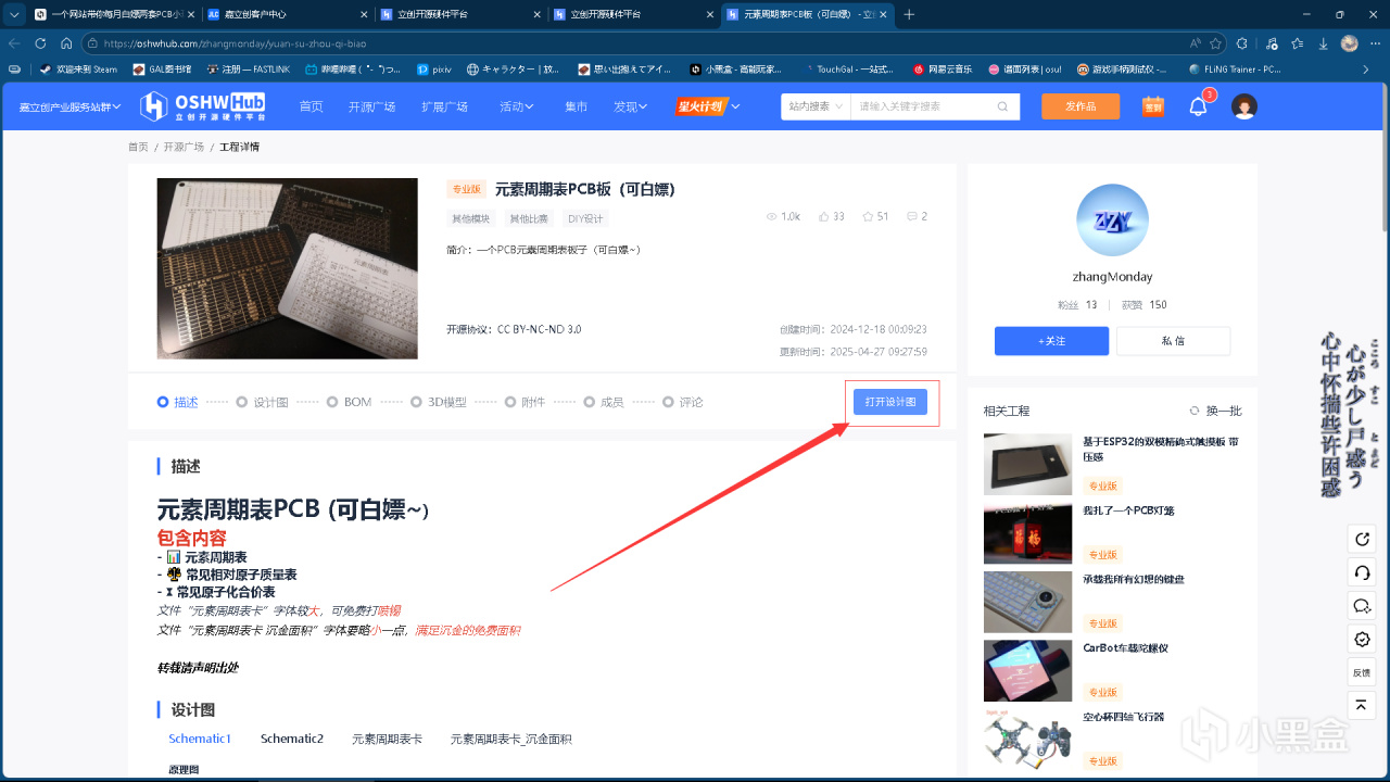 随后我们进入立创开源广场挑选喜欢的PCB,点击打开设计图