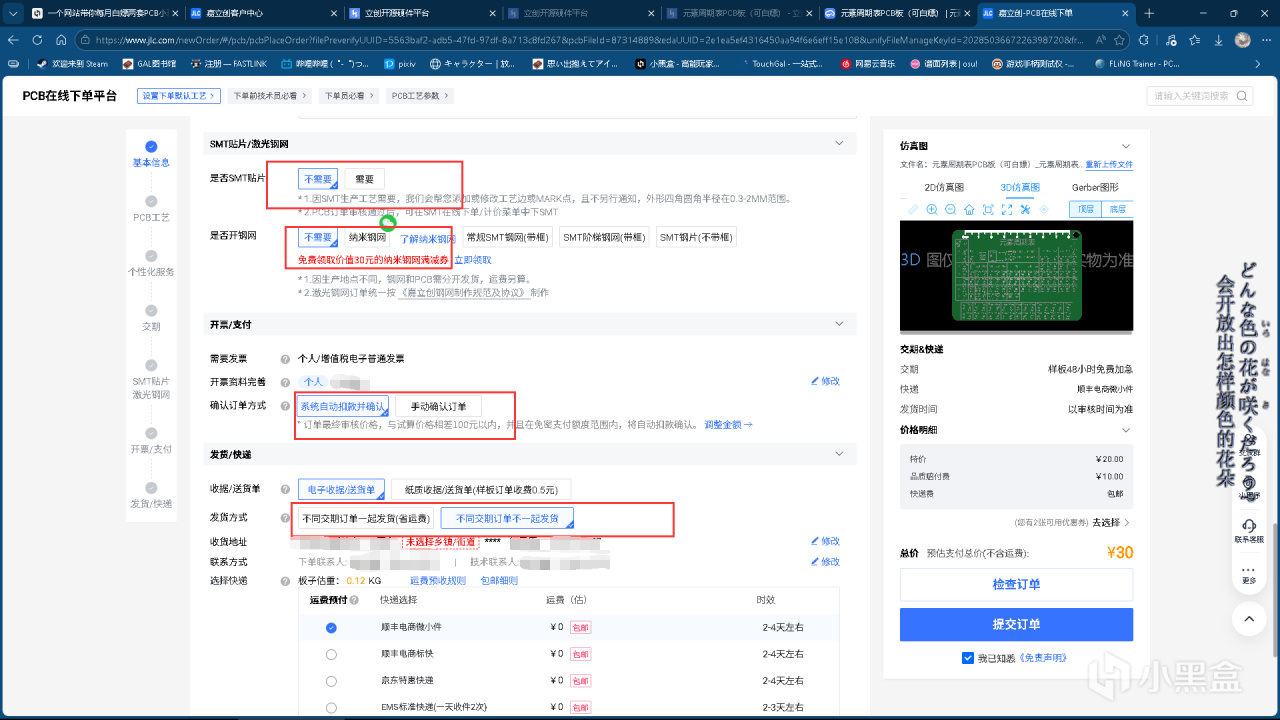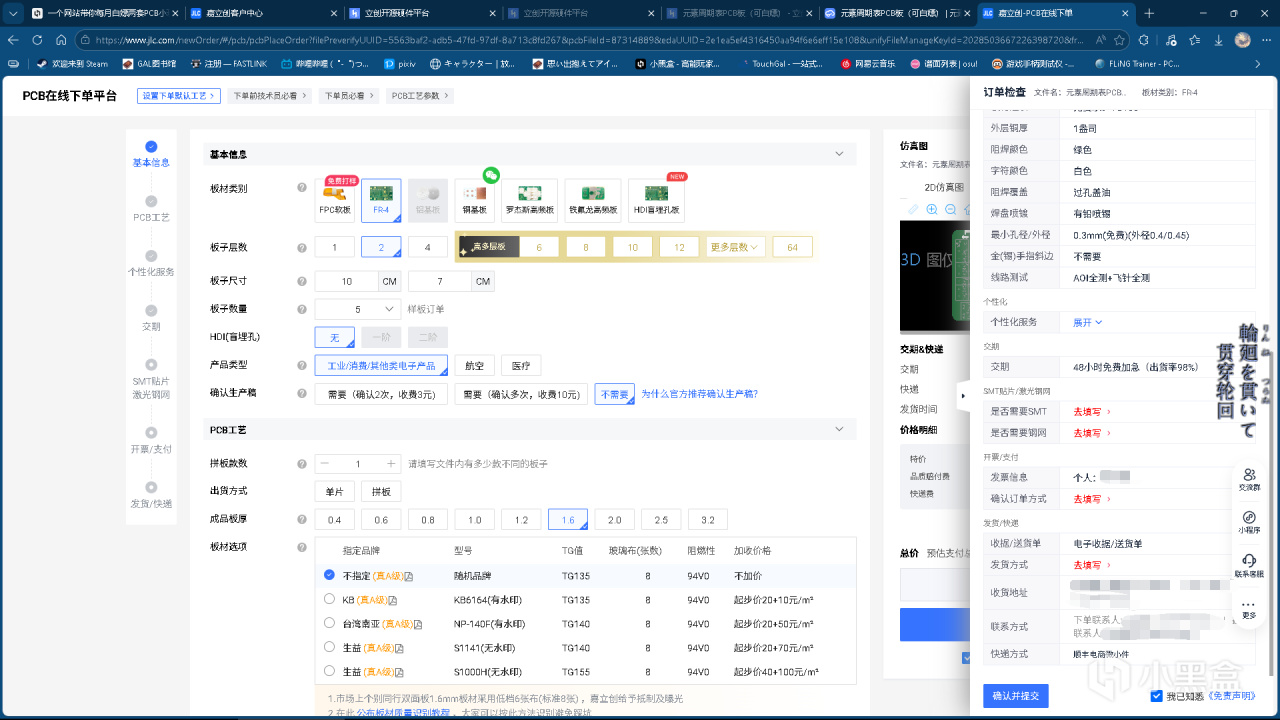 在下单页面,如果PCB的作者没有特殊说明,基本不用改什么东西