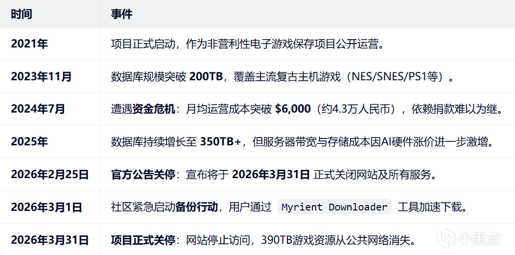 近期,全球规模最大的非营利性经典游戏档案库项目Myrient宣告,将于本月月底(2026年3月31日)终止全部服务。这一消息标志着,由全球玩家共同构建的庞大“记忆宝库”即将谢幕。
