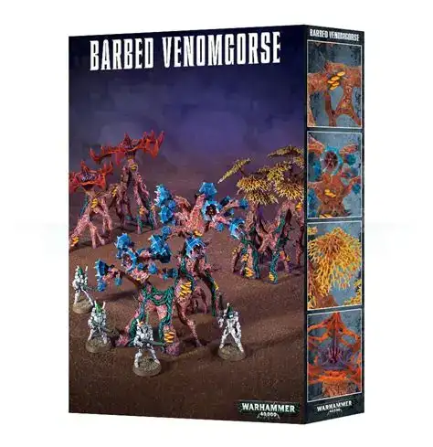 倒鉤毒荊豆 - 覆蓋着明亮而誘人的異星植物,死亡世界是奇怪而陰險的地方,很少有人訪問,更少有人能完好無損地離開。大部分的痛苦、折磨和死亡都可歸因於倒鉤毒荊豆的生長。這種食肉植物擁有原始而狡黠的智慧,適應力極強,它會蜿蜒爬向任何有生命的東西,能夠在其整個生命週期中生成新的武器和毒素,同時向其受害者注入使人衰弱的神經毒素,而其結果往往是致命的。通常可以發現它周圍聚集着死動物的骨頭、異形骷髏,以及偶爾不幸的乾癟人類屍體纏繞在其充滿惡意的根莖和樹枝中。單單一株這種異形雜草的毒液就足以殺死一個巢都世界的大部分人口。倒鉤毒荊豆的特點是其網狀葉片、花蕾和帶倒鉤的花朵,植物的主體是茂密纏繞的多刺藤蔓。它也可以生長成被稱爲纏結草的致命變種。