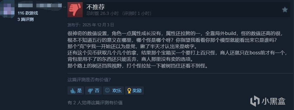 最近不是寫了一個回顧去年做獨遊的文章嘛,就想着翻翻咱們遊戲之前的一些評價看看,然後就發現了一個差評,開始也沒在意,突然發現這位玩家居然總共了26.3小時,差評給出的時間是玩了1小時的時候。