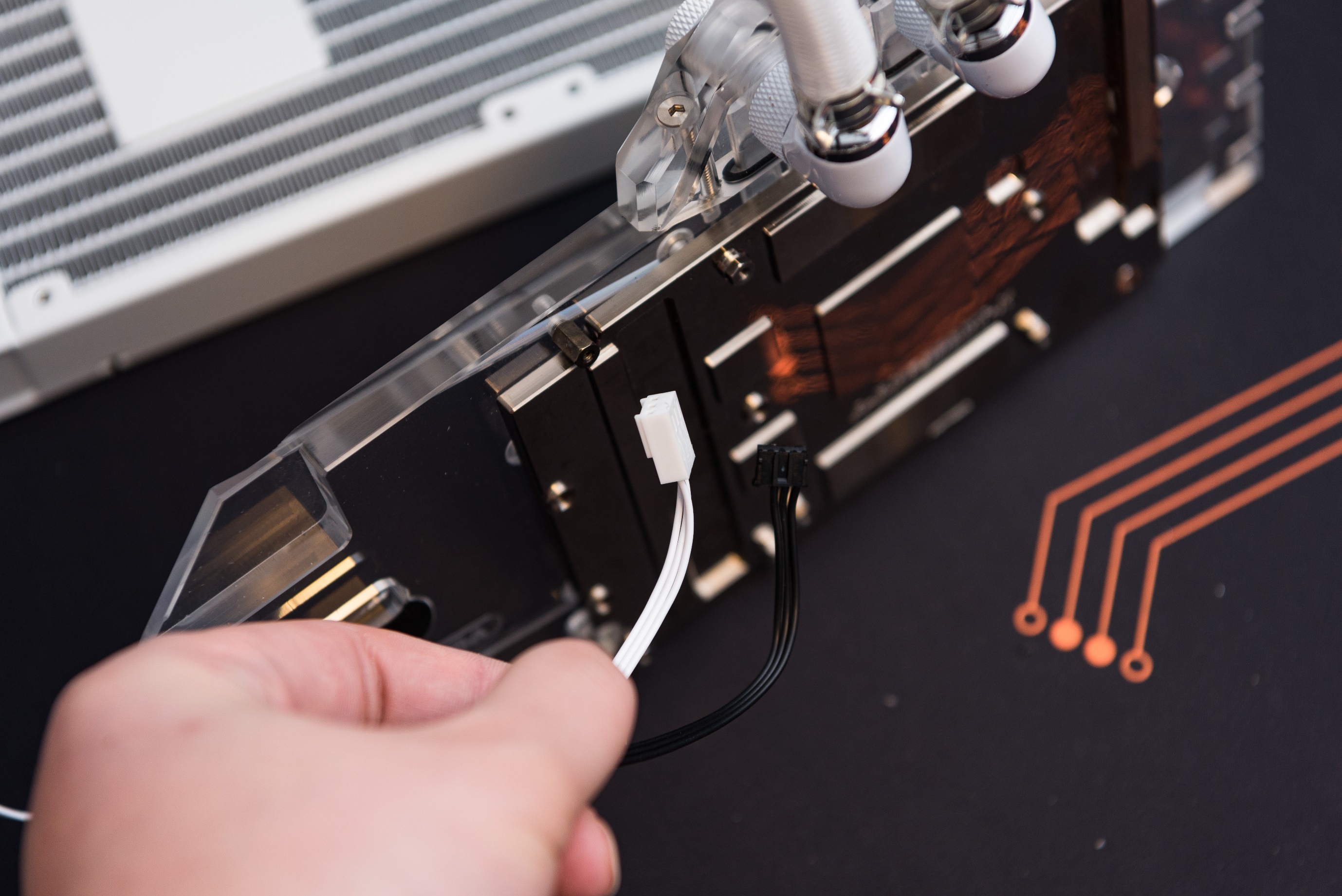 原装的安装匹配完美,硅脂贴合紧密。原装水冷最大的优势是可以接显卡PCB面板上的风扇控制线,一体化程度高,捣腾也简单,也就换个散热器的难度,小意思了。