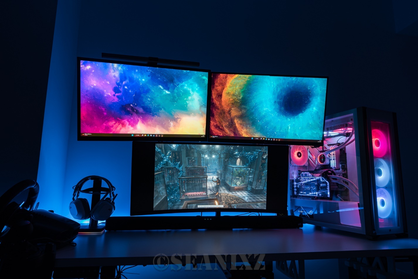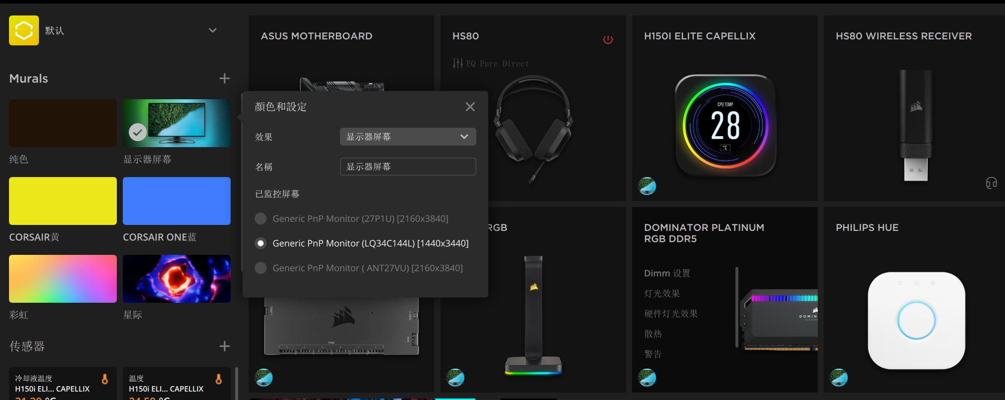 海盗船iCUE支持屏幕光效,我还加入了飞利浦的HUE光带增加环境氛围,玩游戏的时候有神秘光效加成,相当于游戏光效拓展到了整个房间,沉浸感极强。