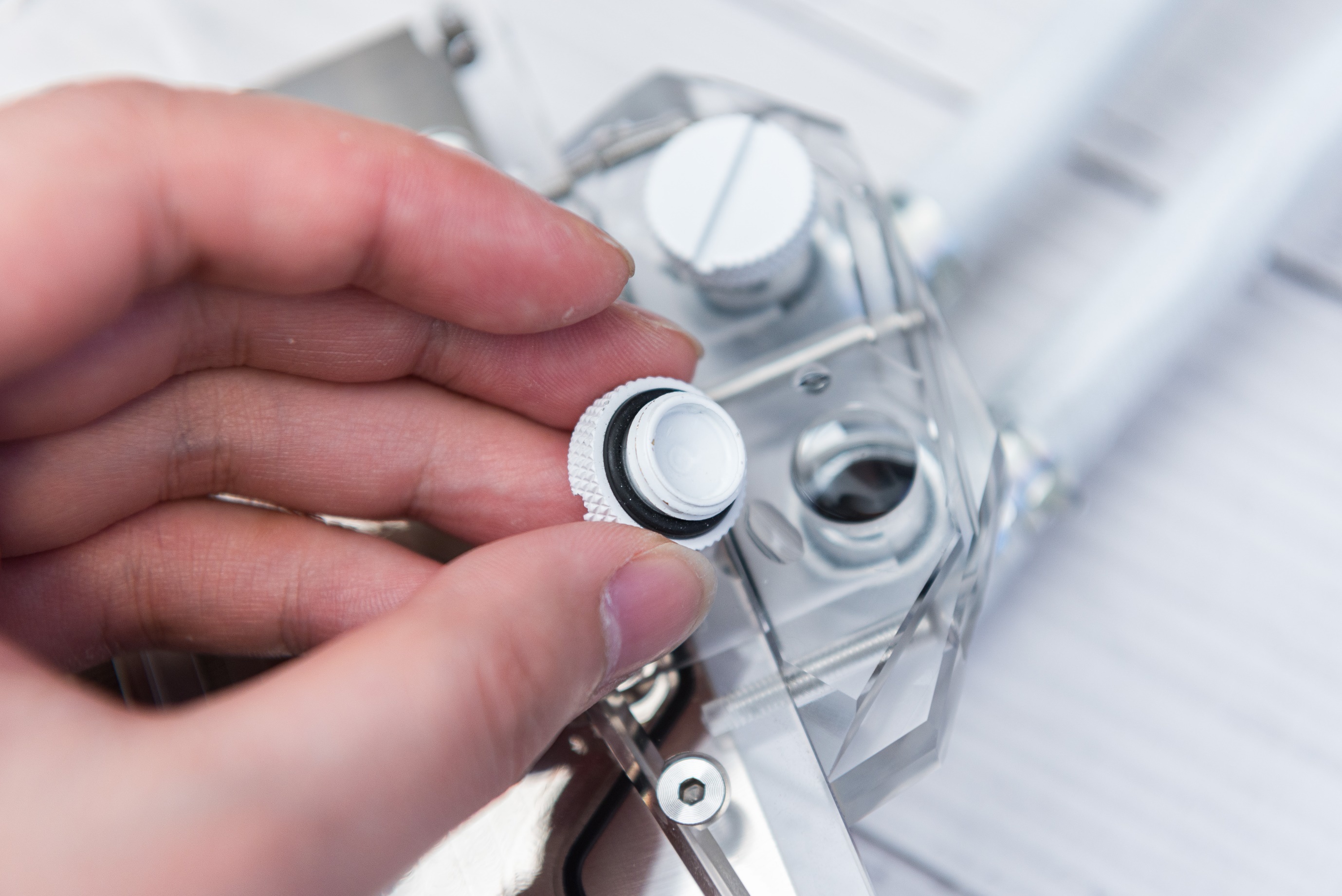 堵头自带个光滑的凹面可以利用水的表面张力填满,直接盖上去也不会有气泡,用起来比较简单方便。