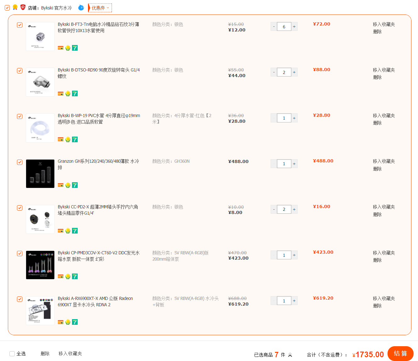 瞄了一眼心心念念的分体式整机配置,by家有完整的全套导流板水路方案,完美适配我的这台海盗船7000D机箱,但是价格也是真的贵。