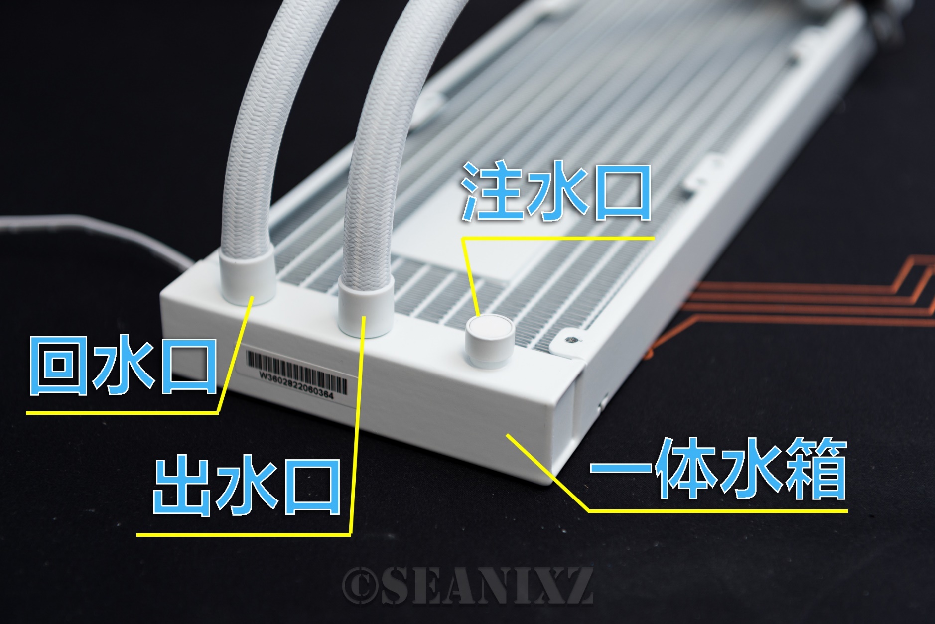 冷排还带单独的注水口,其实两头就是个100ml左右的水箱,总计200ml的容量带动这套足够了。