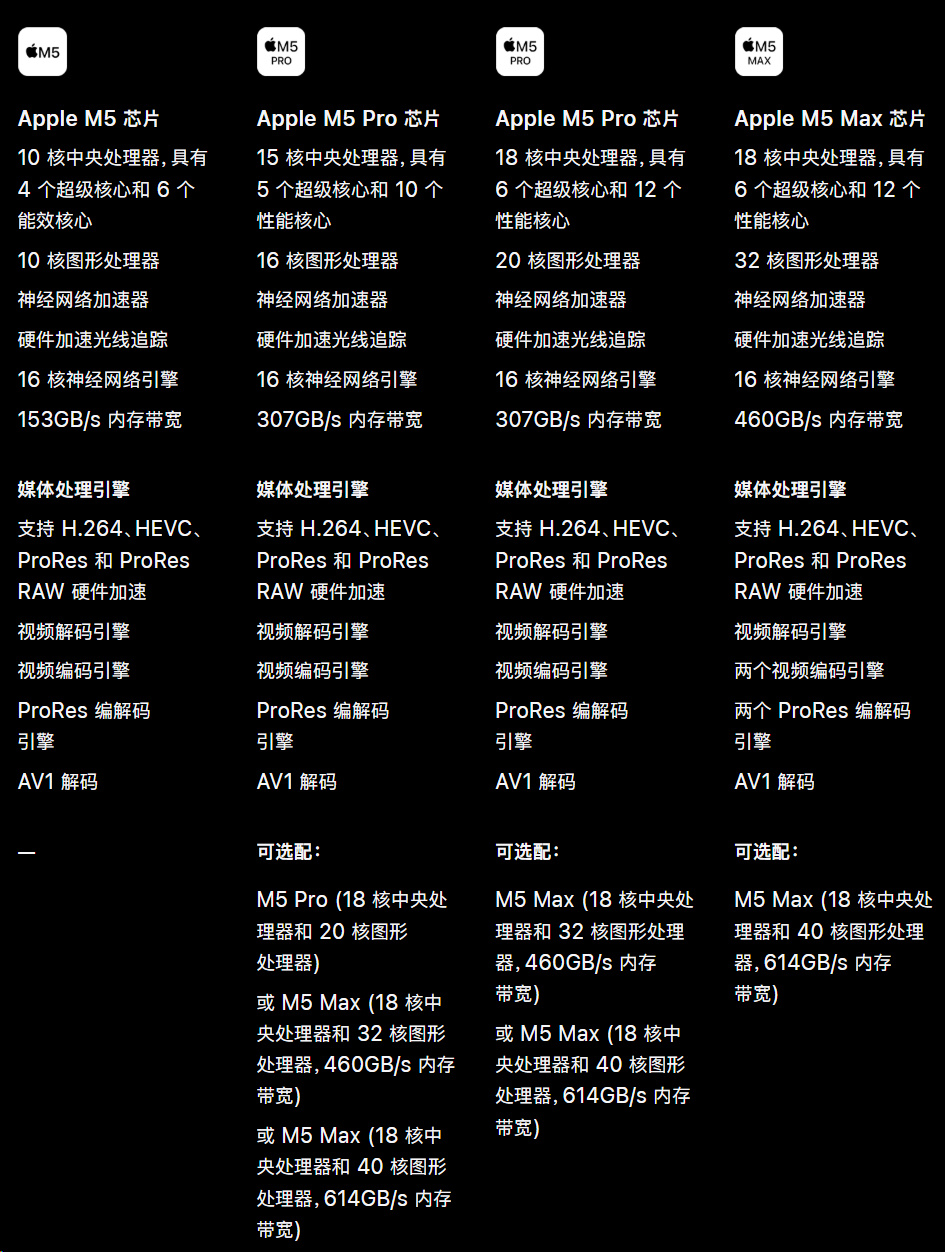 M5 Pro M5 Max上架,MacBook 系列算是集齐了。