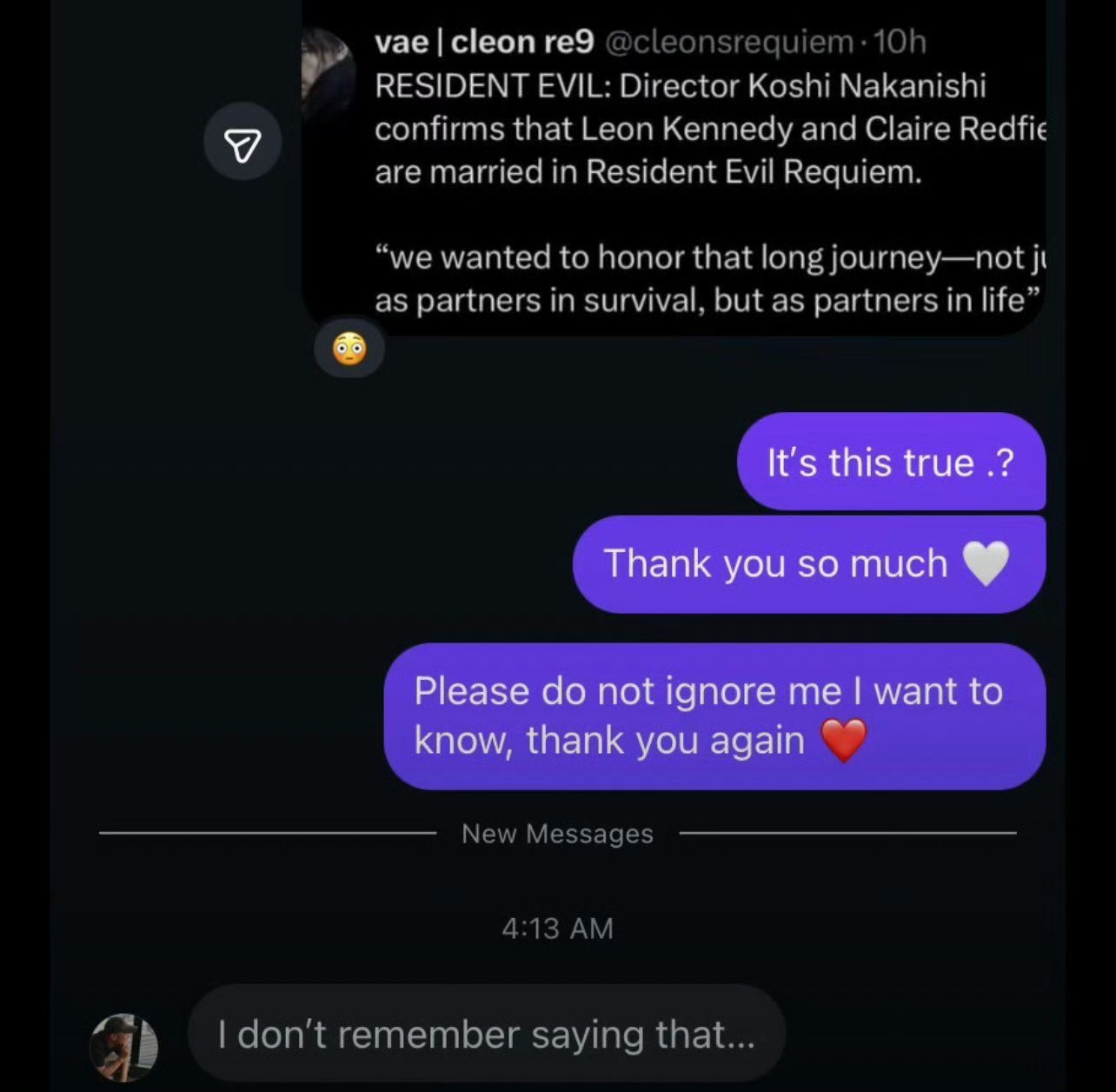 - 被问“里昂和克莱尔结婚了吗”,中西晃史回应:我不记得说过那个。