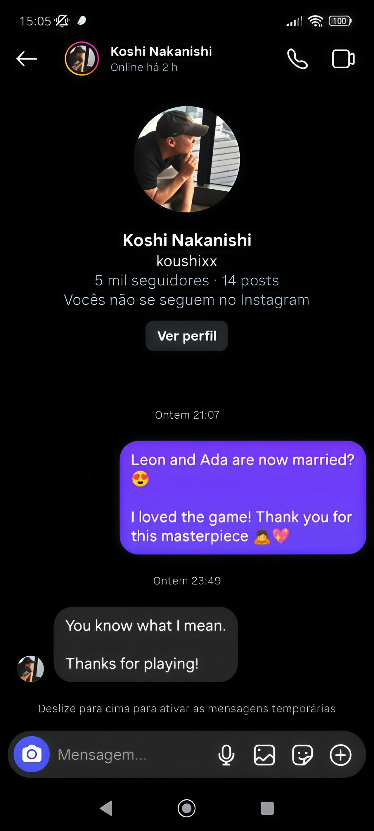一张玩家与制作人中西晃史的私信截图曝光