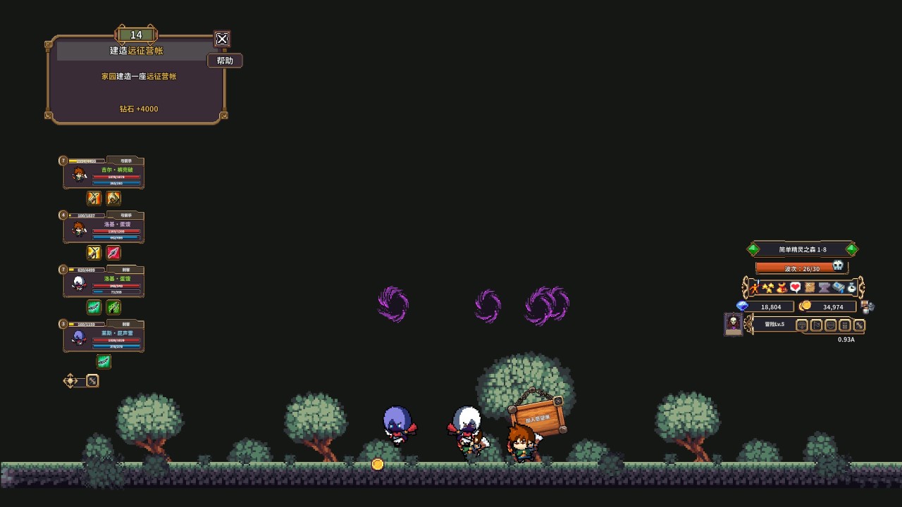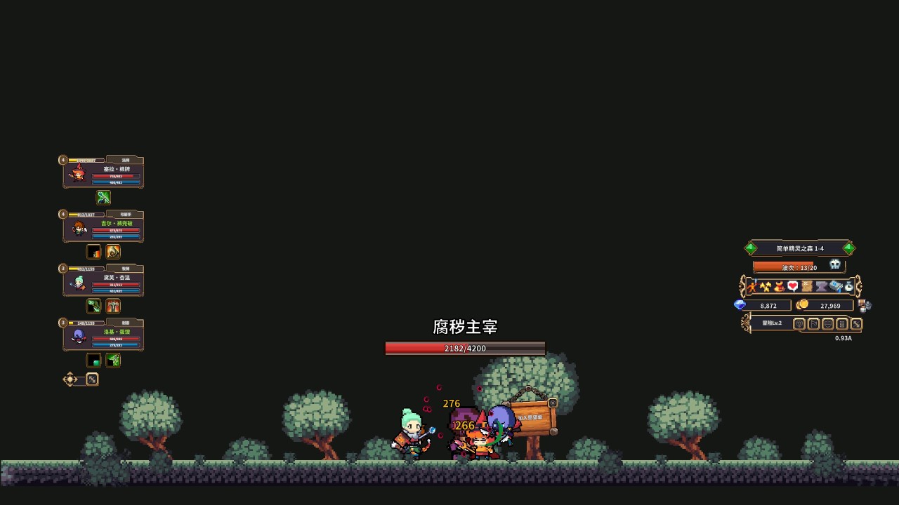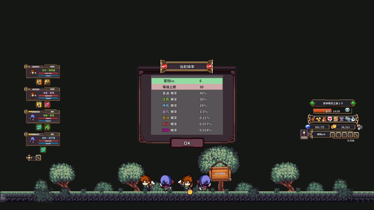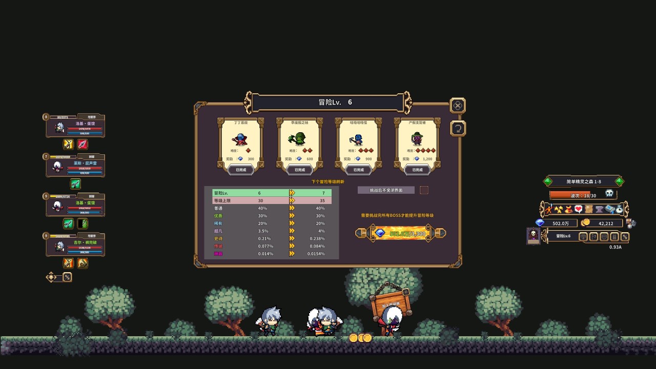 遊戲的冒險整體被分爲幾個部分,首先是常態刷怪,在這個狀態下我們會刷好多輪的小怪,這些小怪會掉一些金幣或者是尋常的資源獎勵,而當刷完幾波小怪之後,則會出現對應冒險的boss,打敗boss之後,玩家就會獲得隨機掉落的裝備。