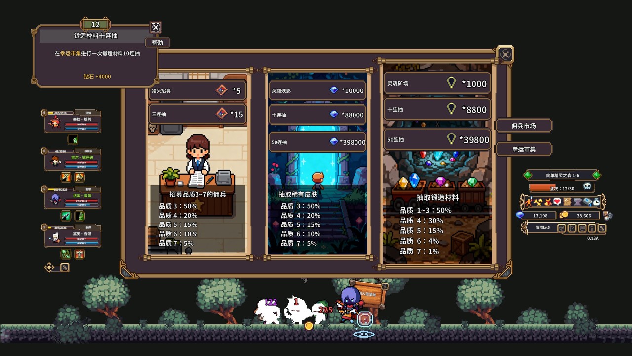 遊戲採取了像素畫風,而且角色都是以2d的方式進行戰鬥,整體刷副本的節奏其實就是數值對戰,他並不強求你把角色以固定的搭配,搭配好再進行鍼對性的調整,遊戲當中不同等級,不同品級的傭兵都能起到非常重要的作用,並不一定需要你想辦法找到一個好的搭配組合。