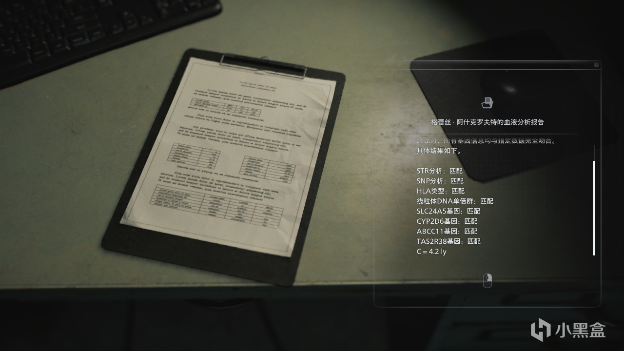 通过查看私人实验室中的文件《格蕾丝·阿什克罗夫特的血液分析报告》中记载着“C=4.2ly”。其中ly是光年单位,结合4.2ly是地球至最近恒星“比邻星”的距离信息,可知出“C”代表“星星”。