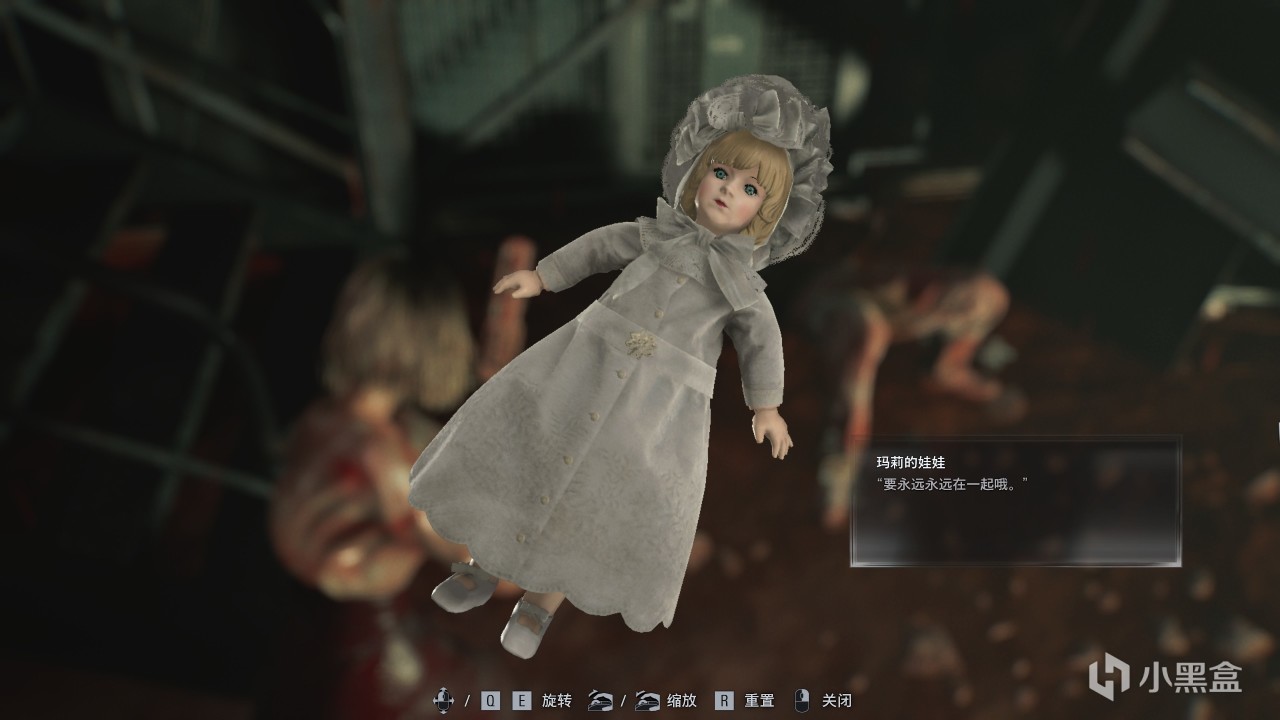 6、继续推进剧情到疗养院中庭,在储血实验室血罐破裂触发剧情,跑到楼梯前拾取“玛莉的娃娃“,然后通关(必须通关,此时读档不行)。