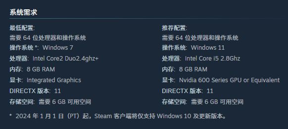 遊戲的配置要求如上,不會很高。