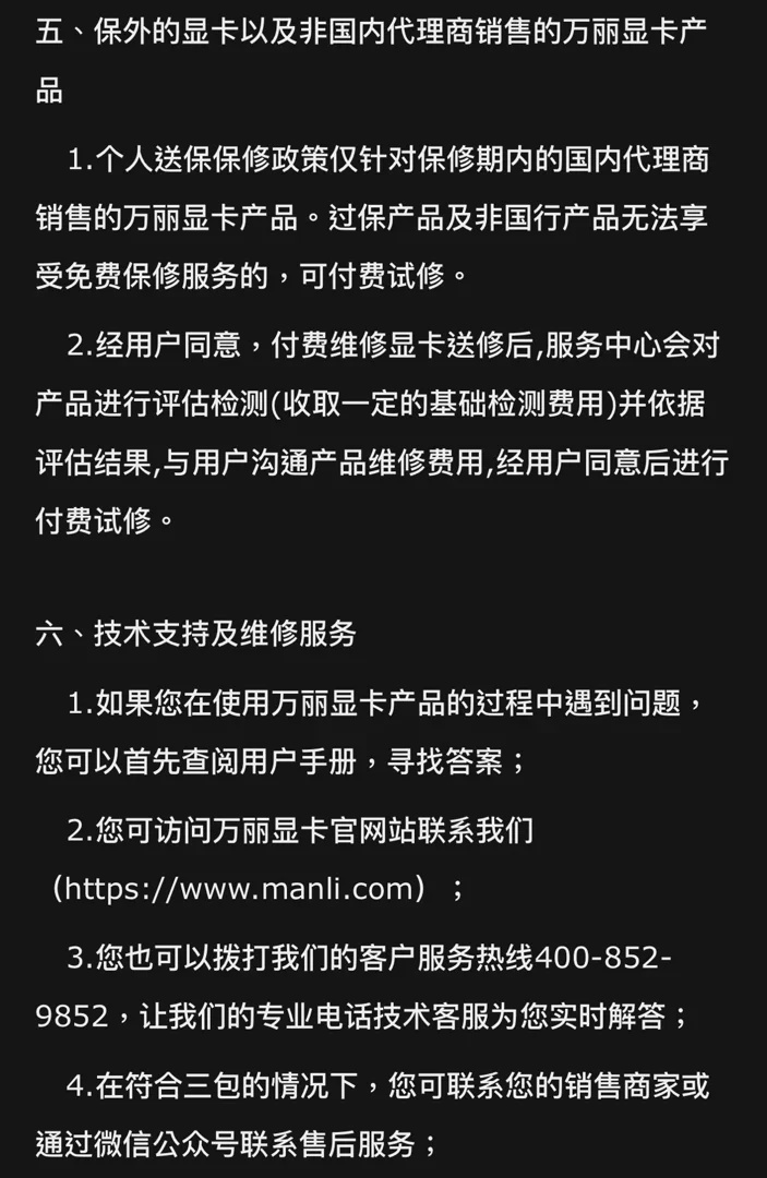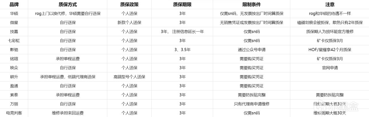 他家的质保可以在官网注册产品信息延长一年质保,而且也有代保服务,其余也算是合格,但是23年之前的显卡是不支持个人送保的
