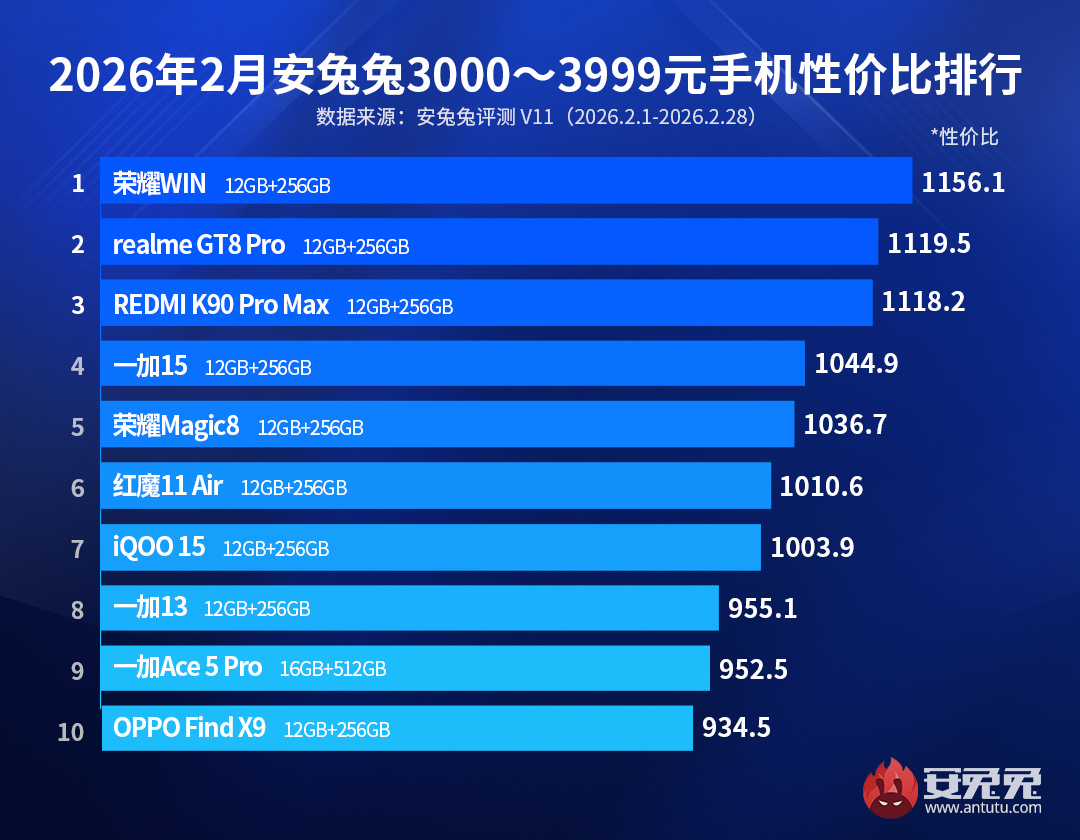 以上就是给大家节选的2月Android手机性价比榜内容,有兴趣的朋友可以搜索安兔兔官网查看完整榜单。