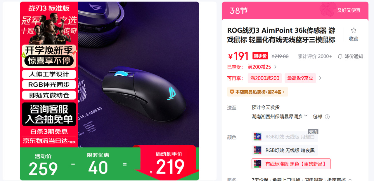 如果想让败家之眼LOGO也亮起来,便宜100元就能选影刃3有线版(Logo光效+滚轮光效)。