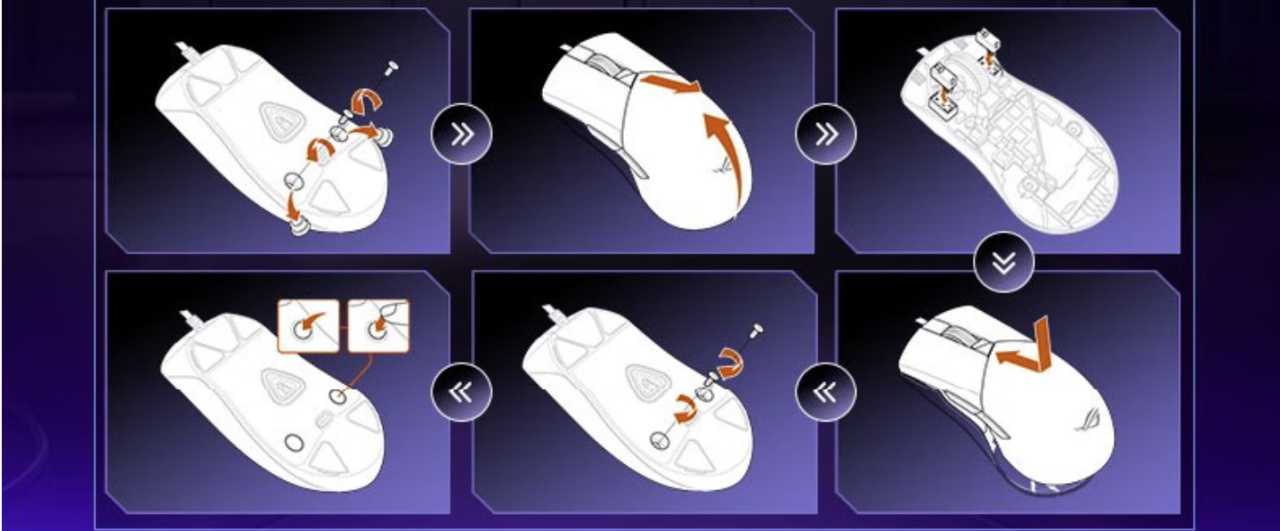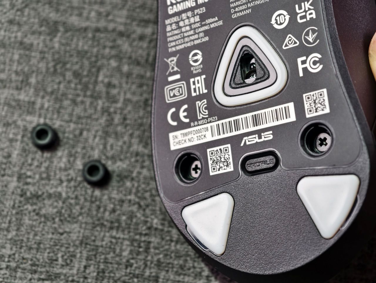 有线版和无线版都搭载了ROG二代即插式微动,后续可以自己更换,方便适配不同手感和使用场景,这点很实用。