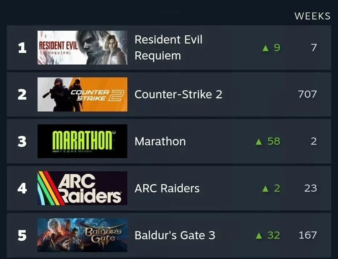 14.3万的Steam在线玩家峰值,预购冲上Steam畅销榜前三,这两个数据放在一款买断制射击游戏上已经算是亮眼。作为对比,同赛道的《ARC Raiders》测试期在线玩家峰值为19万,成为2025年海外撤离射击品类中的佼佼者。《马拉松》Steam在线人数和它相比虽然还差了一点,但也足以看出Bungie核心粉丝依旧保持极高忠诚度。