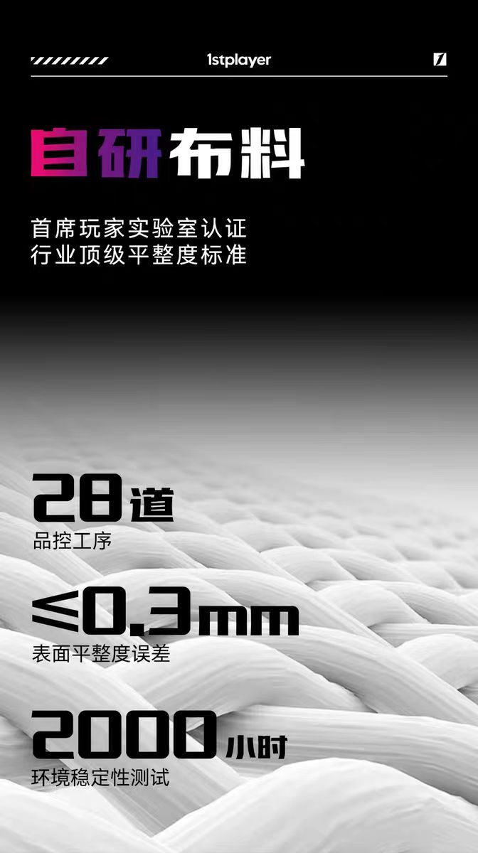 这还没完呢,这款鼠标垫的面料还是首席玩家从126种布料当中甄选出来的,就连摩擦系数也精校到了黄金0.42,属于是滑垫的集大成之作了。并且其编制工艺采用的还是微米级交错织法,滑度与定位已然达到黄金比例。