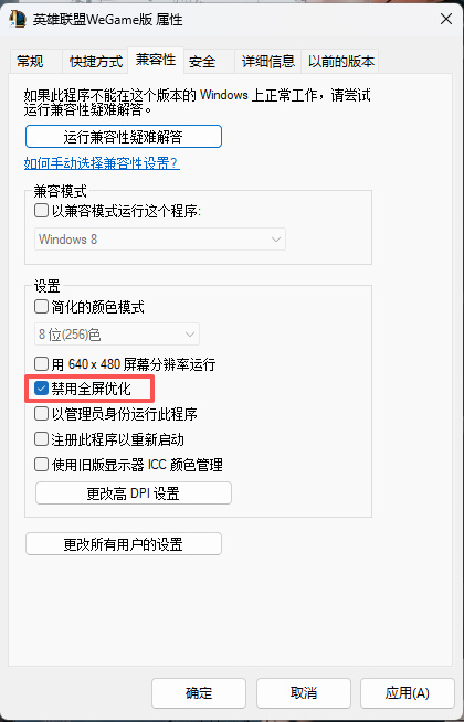 二. 关闭「全屏优化」,老游戏 / 联机游戏必开
