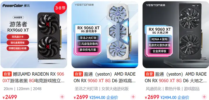 A卡RX 9060XT 8G,2499元價位,性價比分:6.51