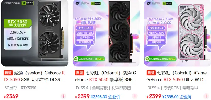 N卡RTX 5050 8G,2399元價位,性價比分:4.35