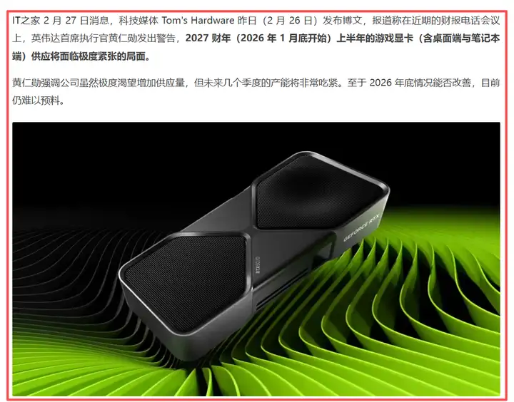 1、N卡CEO黃仁勳表示,上半年顯卡供應會非常緊張: