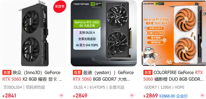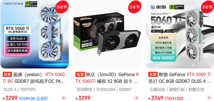 如果你在物色5060,也可留意5060TI 8G的價格。如果價差200內,那可以考慮性能更強的5060TI 8G!