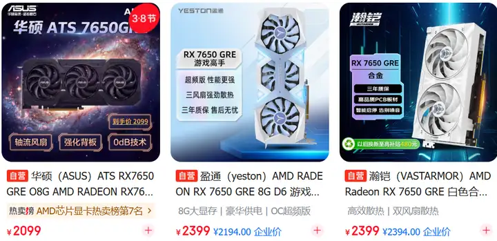 A卡RX 7650GRE 8G,2099元價位,性價比分:5.18