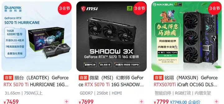 N卡RTX 5070TI 16G,7549元價位,性價比分:3.67
