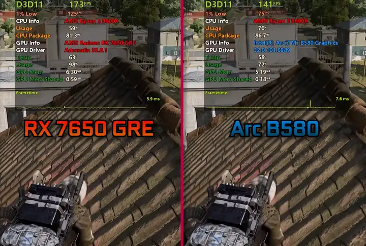 再次小漲,雖然B580理應硬件性能高,可由於驅動優化問題,有些遊戲打不過價格一樣的AMD 7650GRE: