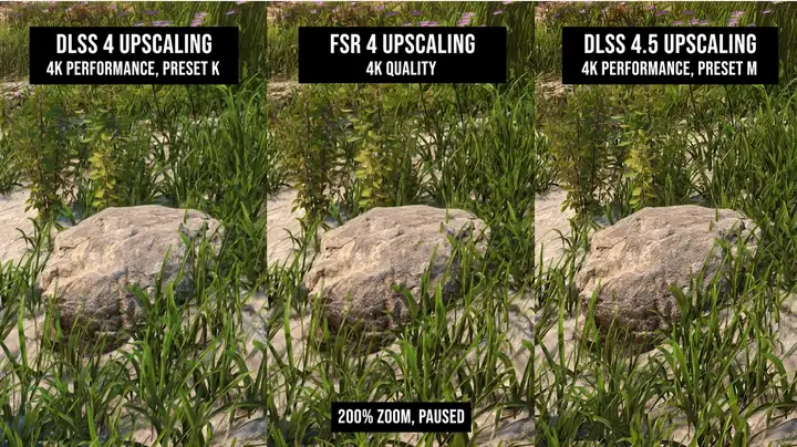 A卡有類似N卡大力水手(DLSS)的FSR技術,開啓後可進一步提升遊戲幀數,最新版本FSR4效果和DLSS4算各有勝負:
