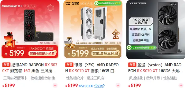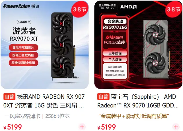 A卡RX 9070XT 16G,5199元價位,性價比分:5.78