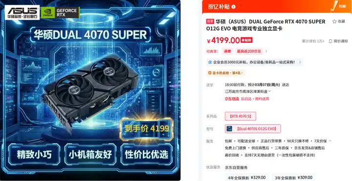 N卡RTX 4070S 12G,4199元價位,性價比分5.02