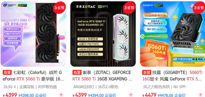 N卡RTX 5060TI 16G,4399元價位,性價比分:3.63